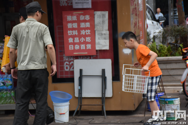 央廣網(wǎng)合肥8月9日消息 “爸爸,為什么書報亭不能賣吃的?”“爸爸,為什么他們都把車停人行道上?”8月8日上午,雖然下起了大雨,但是蜀山區(qū)城管局執(zhí)法大隊二中隊副中隊長蔣建帶著9歲的兒子蔣博軒開始了一天的工作。父子倆一問一答,現(xiàn)實(shí)版“爸爸說”在我們身邊展現(xiàn)。(宗雷 王翔翔)