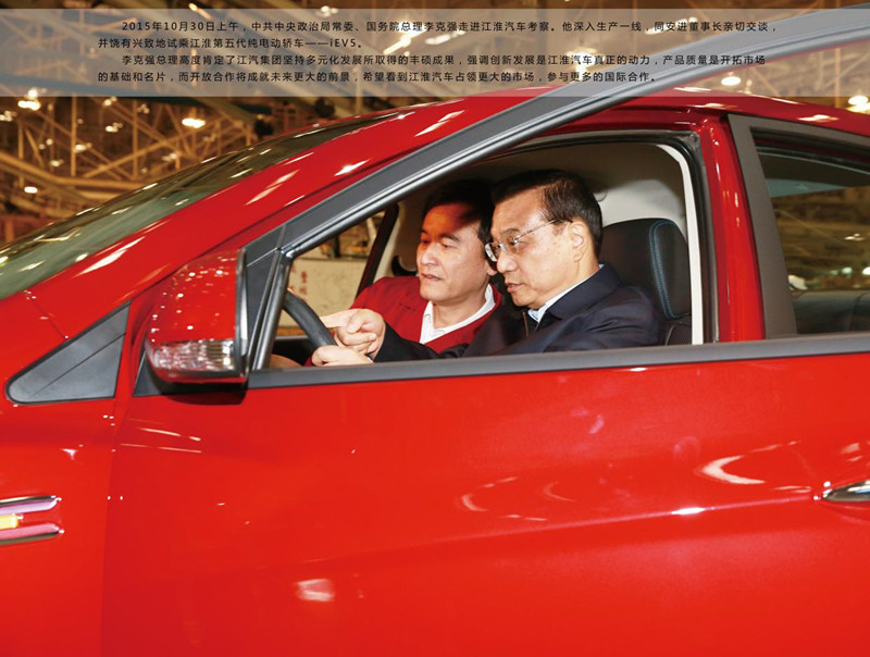 2015年10月30日,陪同德國總理默克爾在合肥訪問的國務院總理李克強,走進江淮汽車集團考察。李克強強調(diào),希望看到江淮汽車占領更大的市場,參與更多的國際合作。