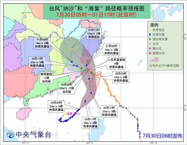 今天上午10時(shí),第9號(hào)臺(tái)風(fēng)“納沙”(熱帶風(fēng)暴)的中心抵達(dá)福建省永泰縣境內(nèi),即北緯25.9度、東經(jīng)118.8度,中心附近最大風(fēng)力有9級(jí)(23米/秒),中心最低氣壓為986百帕。