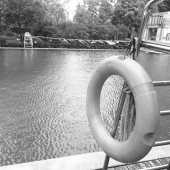 探訪中,記者還發(fā)現(xiàn)該泳池邊懸掛的兩個(gè)橘紅色的救生圈是“假牙”,摸上去是硬塑料制成的!俺剡厬覓斓木壬褪菓(yīng)付檢查的,用這個(gè)救人還不得把人砸傷?”鄭先生告訴記者。