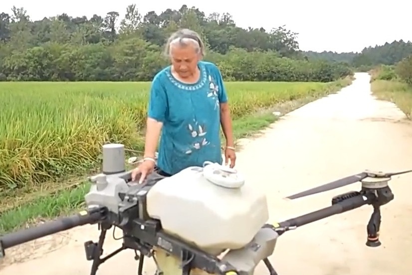遇見你丨“80”后種田奶奶化身新農(nóng)人 操作無人機(jī)滿田飛