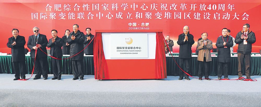 12月14日上午,國(guó)際聚變能聯(lián)合中心成立和聚變堆園區(qū)建設(shè)啟動(dòng)大會(huì)在合肥召開。這是合肥綜合性國(guó)家科學(xué)中心慶祝改革開放40周年系列活動(dòng)之一,標(biāo)志著合肥綜合性國(guó)家科學(xué)中心建設(shè)又取得新的重大成果。省委書記李錦斌宣布“聚變堆主機(jī)關(guān)鍵系統(tǒng)綜合研究設(shè)施園區(qū)工程項(xiàng)目開工”。省長(zhǎng)李國(guó)英,中國(guó)科學(xué)院副院長(zhǎng)相里斌,國(guó)際聚變能聯(lián)合中心有關(guān)專家分別致辭。省委常委、常務(wù)副省長(zhǎng)鄧向陽主持會(huì)議。省領(lǐng)導(dǎo)陶明倫、宋國(guó)權(quán),中國(guó)科大校長(zhǎng)包信和,省政府秘書長(zhǎng)白金明,科技部、國(guó)家發(fā)展改革委相關(guān)負(fù)責(zé)同志,合肥綜合性國(guó)家科學(xué)中心專家咨詢委員會(huì)有關(guān)委員,共同見證國(guó)際聚變能聯(lián)合中心揭牌,并為聚變堆園區(qū)工程項(xiàng)目奠基。