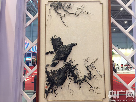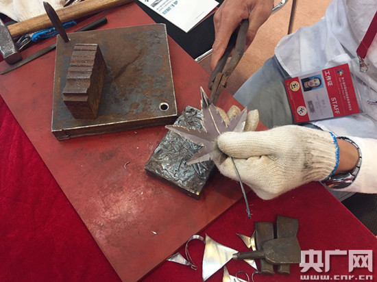 (蕪湖儲氏鐵畫第六代傳人儲鐵藝在展區(qū)現(xiàn)場制作鐵畫)