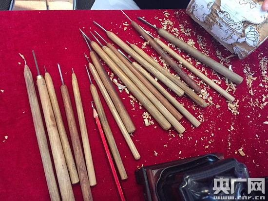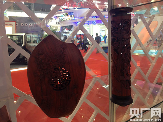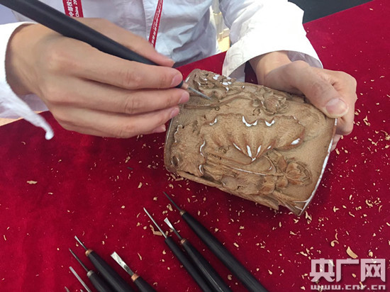 。纤卫韺W(xué)家朱熹第29世孫朱偉在現(xiàn)場展示竹雕技藝)