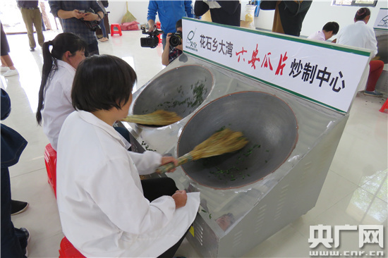 央廣網(wǎng)安徽頻道4月19日六安消息(記者徐秋韻)4月18日,“六安瓜片”炒制實訓班在大灣一笑堂茶廠舉辦,根據(jù)金寨縣農(nóng)業(yè)發(fā)展委員會統(tǒng)一部署,花石鄉(xiāng)依托一笑堂茶葉公司,給新型職業(yè)農(nóng)民培訓六安瓜片炒制作技能。本次培訓從4月16日即已開始。“用茶把進行翻炒,注意用力適當”,記者在培訓現(xiàn)場也學到了一些與炒茶相關(guān)的新名詞。