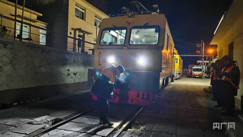央廣網(wǎng)北京2月2日消息(記者 朱冠安)深冬的京西群山,夜色如墨、寒氣刺骨。凌晨1點,“打冰人”王羽和隊員們正在等待“天窗”,一輛橙黃色的軌道車躺在鐵軌上,蓄勢待發(fā)。“天窗”到來后,“打冰人”將乘著這臺“鋼鐵巨獸”前往隧道開始打冰作業(yè)。