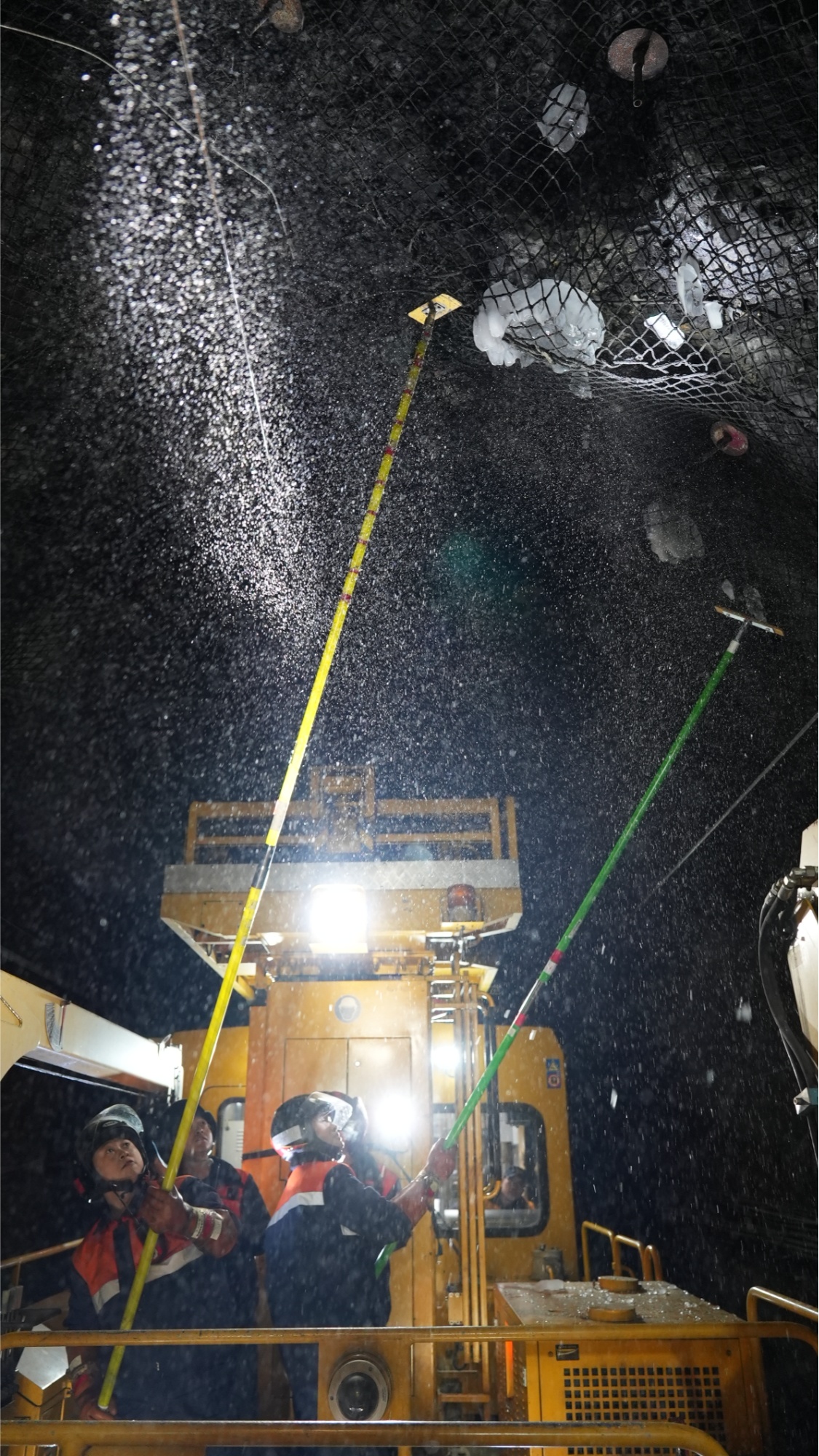 除了軌道車夜間常態(tài)化打冰,隊員們還要應對臨時人工除冰任務。在不停電僅封鎖的臨時計劃中,他們需穿著絕緣鞋,帶著打冰桿,在20分鐘內(nèi)快速通過2公里隧道完成除冰。作業(yè)完畢時,寒夜里的身影總會冒出騰騰熱氣。這支平均年齡僅25歲的隊伍,匯聚不少00后、90后。任磊牽頭成立的黨員突擊隊,通過“傳幫帶”與打冰誓師大會、實戰(zhàn)演練,讓“人身安全第一、密切配合攻堅”的理念代代相傳!八麄兲貏e可愛,肯干又務實!蓖跤鹫f起隊員們滿是欣慰,團隊實行2至3天一輪的夜間輪班制,遇上突發(fā)隱患更要隨時應急搶修。