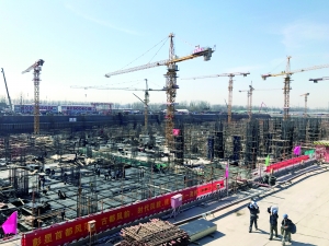 探訪當日,北京晨報記者走過一條長長的甬道來到臨邊防護圍欄前,60萬平方米的超大體量施工現(xiàn)場著實令人震撼。13臺塔吊在施工現(xiàn)場不同部位不停揮動著長臂,完成著一次次超大跨度的運輸?shù)跹b。綠色的運輸卡車正在川流不息地進行著土方回填,一片井井有條的繁忙景象。據(jù)現(xiàn)場工作人員介紹,目前,地下結(jié)構施工已臨近尾聲,預計5月底前全部完成。
