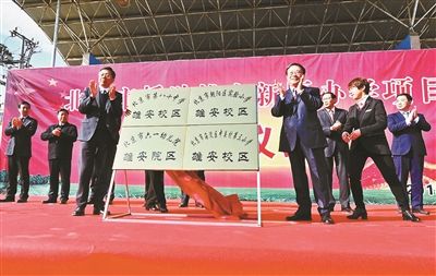 昨天上午,北京市援助雄安新區(qū)辦學(xué)項目啟動儀式在雄安新區(qū)容城小學(xué)舉行,北京市朝陽區(qū)實驗小學(xué)雄安校區(qū)、北京市第八十中學(xué)雄安校區(qū)、北京市六一幼兒院雄安院區(qū)、北京市海淀區(qū)中關(guān)村第三小學(xué)雄安校區(qū)等四所學(xué)校正式掛牌成立。此舉標(biāo)志著北京市教育援助雄安首個項目啟動實施。