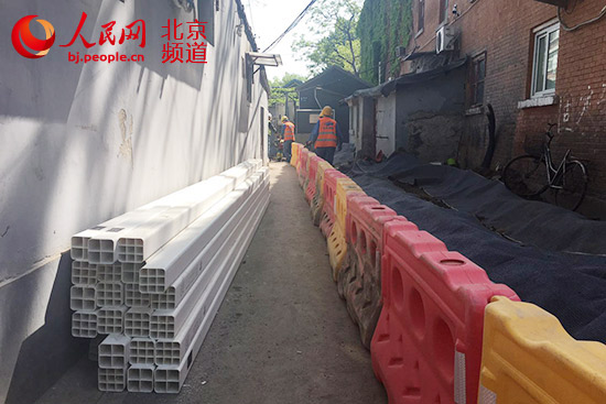 金融街街道西斜街42號(hào)院門前,背街小巷架空線入地施工正在緊張的進(jìn)行。人民網(wǎng) 鮑聰穎 攝