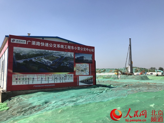 廣渠路快速公交系統(tǒng)工程東小營公交中心站施工現(xiàn)場。 人民網(wǎng)池夢蕊 攝