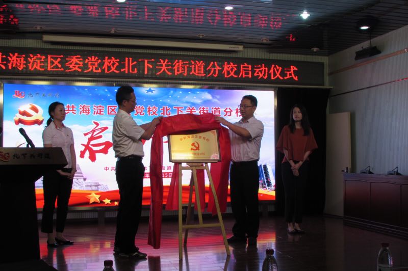 海淀區(qū)委黨校常務副校長何昭瑾、區(qū)委組織部領導,北下關街道領導班子成員、基層黨組織負責人、北下關街道機關全體黨員、大柳樹中心教室部分參訓黨員,共約150人參加揭牌儀式。儀式上,海淀區(qū)委組織部副部長張東川和北下關街道黨工委書記張澤根一同為“中共海淀區(qū)委黨校北下關街道分!苯遗。