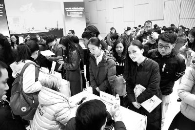 2019年北京市通州區(qū)走進(jìn)高校英才選聘活動在清華大學(xué)舉行,參加選聘會的學(xué)生爭相投遞簡歷,與用人單位交流。本報(bào)記者和冠欣 攝