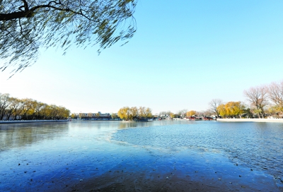 什剎海前海部分水面已結(jié)了一層薄冰。攝影 于志強(qiáng)