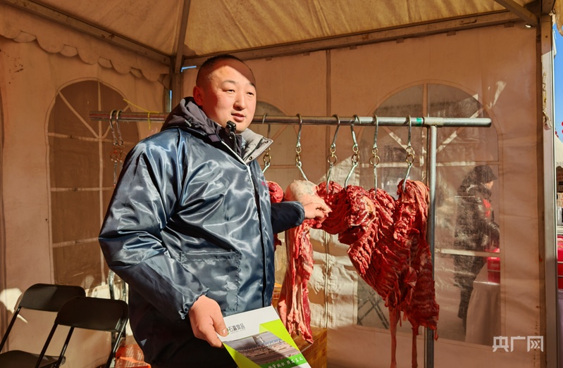 展銷商介紹帶來的特產(chǎn)驢肉(央廣網(wǎng)記者 龐婷 攝)
