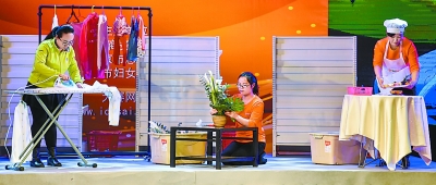 昨天(11月30日)下午,在北京劇院,三名在北京市商業(yè)服務(wù)業(yè)服務(wù)技能大賽中獲獎的家政服務(wù)員現(xiàn)場展示熨燙、插花和水果拼盤操作。本報記者 鄧偉攝