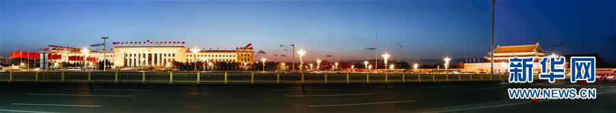 •   這是3月5日拍攝的北京天安門(mén)廣場(chǎng)(拼接照片)。 新華社記者張鋮 攝