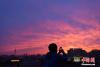 北京雨后現(xiàn)壯美火燒云,民眾拍攝美景。中新社記者蘇丹 攝 -