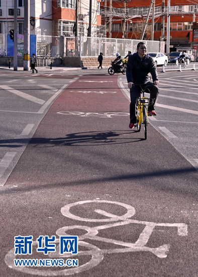 12月18日,一位北京市民在朝陽(yáng)區(qū)東大橋路口的自行車專用道上騎行。新華社記者 李欣攝 近年來(lái),為倡導(dǎo)綠色出行,北京市交通委路政局先后進(jìn)行了步道整治拓寬、路緣石修復(fù)、無(wú)障礙坡化、清理占道障礙物、保障非機(jī)動(dòng)車道寬度、彩色鋪裝提示警示等方面的城市慢行系統(tǒng)建設(shè)。2016年至今,北京市已完成市管城市道路468公里步行和自行車的慢行系統(tǒng)治理工作,計(jì)劃到2020年完成3200公里的步行和自行車慢行系統(tǒng)的治理工作。