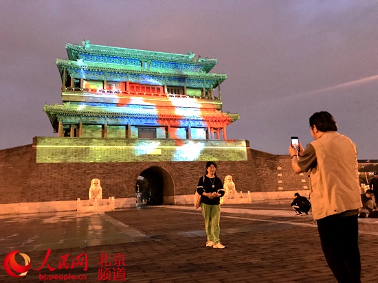 永定門城樓南廣場迎國慶燈光秀啟動。 人民網(wǎng) 池夢蕊 攝