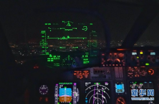 12月4日從機(jī)長(zhǎng)視角拍攝的飛行中HUD顯示的內(nèi)容。 新華社記者 邢廣利 攝