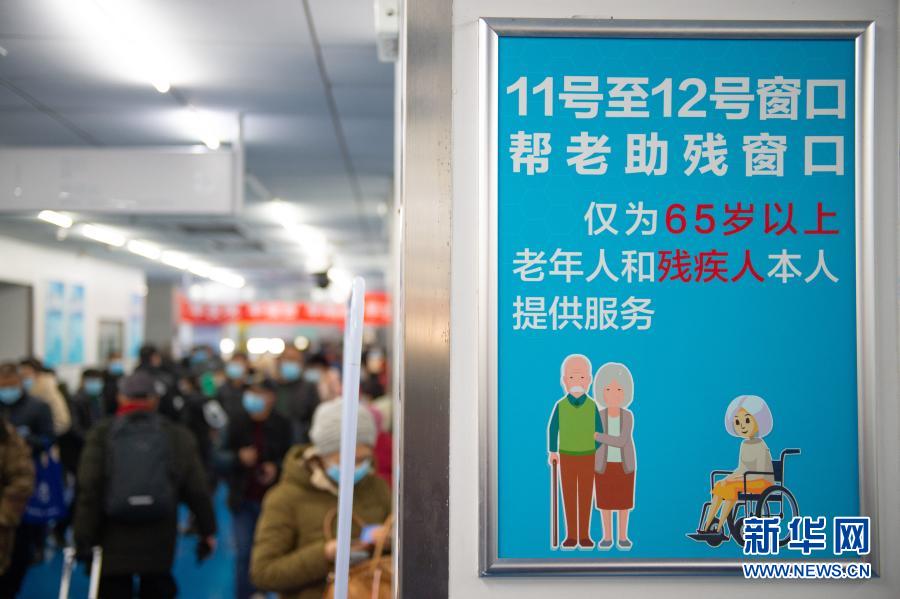 首都醫(yī)科大學(xué)附屬宣武醫(yī)院門診大廳里立起了“幫老助殘窗口”引導(dǎo)牌(12月10日攝)。
