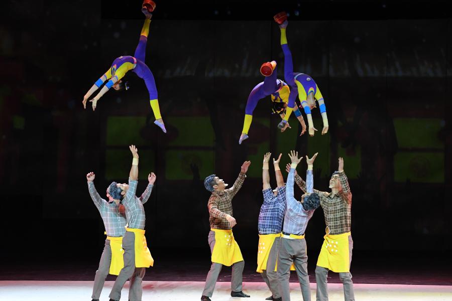 北京:感受雜技藝術(shù)魅力,12月15日,演員在《我和我的青春—青春ing》雜技主題晚會中表演雜技《我家有女初長成——頂碗》。當(dāng)日,《我和我的青春—青春ing》雜技主題晚會在北京保利劇院舉行,本次演出采用現(xiàn)代化技術(shù)手段與雜技相結(jié)合的方式,通過八個節(jié)目為觀眾展現(xiàn)雜技藝術(shù)的魅力。