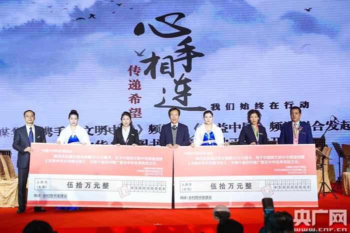 活動現(xiàn)場捐贈了第二批價值100萬元圖書!段拿髦腥A》頻道作為媒體,承擔社會責任、關(guān)注公益事業(yè),充分發(fā)揚公益精神回饋社會,促進文化教育進步,使中華民族優(yōu)良傳統(tǒng)得到升華,彰顯出新媒體的文化精神風貌。