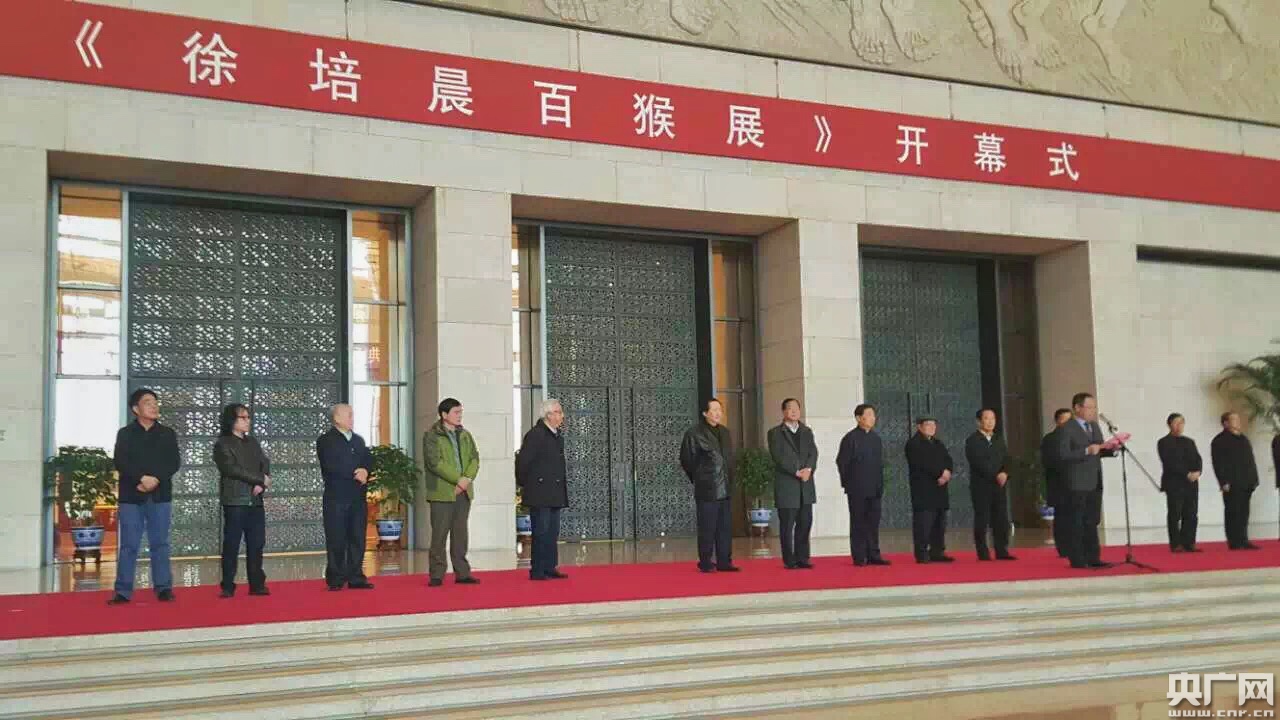 央廣網(wǎng)北京1月10日消息(記者 張庶卓)1月10日,為了迎接2016農(nóng)歷猴年的到來,由中共江蘇省委宣傳部、中國美術(shù)家協(xié)會(huì)、中國畫學(xué)會(huì)、江蘇省文化廳、南京師范學(xué)大學(xué)主辦,江蘇省中國畫學(xué)會(huì)、江蘇省美術(shù)家協(xié)會(huì)承辦的“徐培晨百猴迎春展”在中國國家博物館西大廳舉行隆重的開幕儀式。展覽日期至1月21號(hào)結(jié)束,展廳地址為北1展廳。