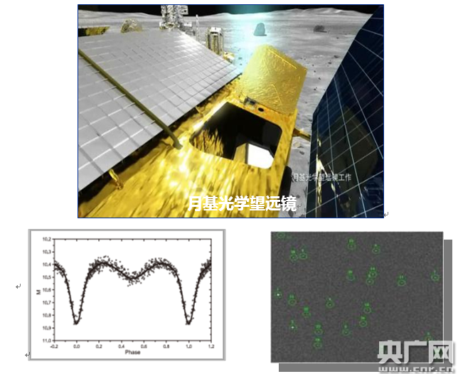 研制了首臺(tái)月基光學(xué)望遠(yuǎn)鏡,利用月球高真空無(wú)大氣影響和月球自轉(zhuǎn)緩慢因而連續(xù)觀測(cè)周期長(zhǎng)的特點(diǎn),一是在月面上對(duì)多個(gè)天區(qū)實(shí)現(xiàn)3900多小時(shí)近紫外天文觀測(cè),已獲得18.7萬(wàn)幅圖像數(shù)據(jù)。二是得到一批重要密近雙星完整的紫外光變曲線,發(fā)現(xiàn)仙王座GK星是雙星快速物質(zhì)交流演化中的天體,對(duì)檢驗(yàn)雙星理論模型具有重要意義。三是獲取了月球外逸層水含量的最新結(jié)果,水的含量比哈勃望遠(yuǎn)鏡的探測(cè)結(jié)果低2個(gè)數(shù)量級(jí),與理論預(yù)期值最為接近,修正了國(guó)外得出的月球上有大量水分子存在的結(jié)論。