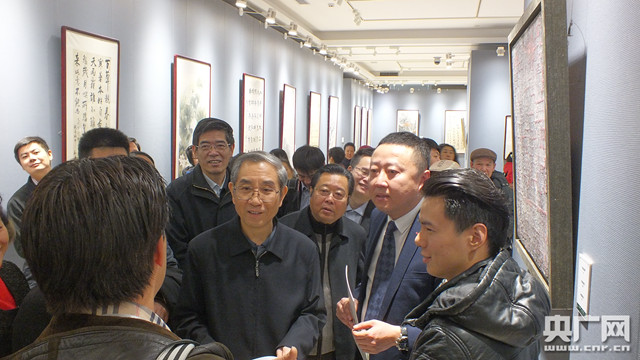 全國(guó)政協(xié)副主席馬飚和中國(guó)殘聯(lián)黨組書記魯勇等領(lǐng)導(dǎo)參觀展覽并與作者交流