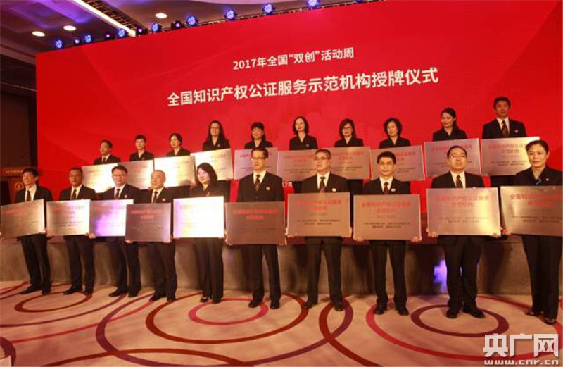 全國(guó)知識(shí)產(chǎn)權(quán)公證服務(wù)示范機(jī)構(gòu)授牌暨中國(guó)知識(shí)產(chǎn)權(quán)公證服務(wù)平臺(tái)開(kāi)通儀式現(xiàn)場(chǎng)(王建軍 攝)