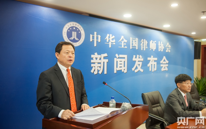 全國律協(xié)副會長、新聞發(fā)言人、全國律師行業(yè)黨委委員蔣敏主持新聞發(fā)布會