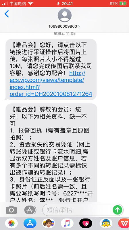 唯品會(huì)給受害者發(fā)來(lái)的墊付流程