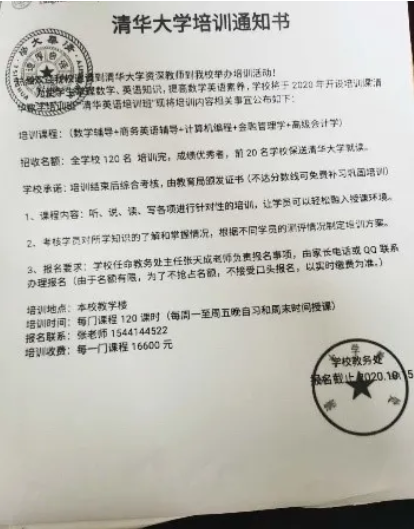 騙子偽造的清華大學(xué)培訓(xùn)通知書(圖片來源:江蘇警方微信公號)