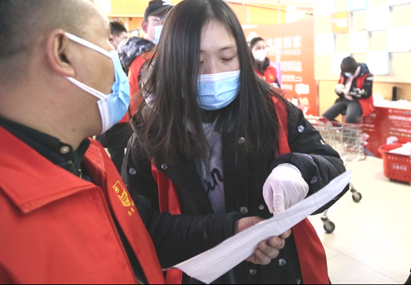 志愿者在超市內(nèi)分配物資(央廣網(wǎng)發(fā) 受訪者供圖)