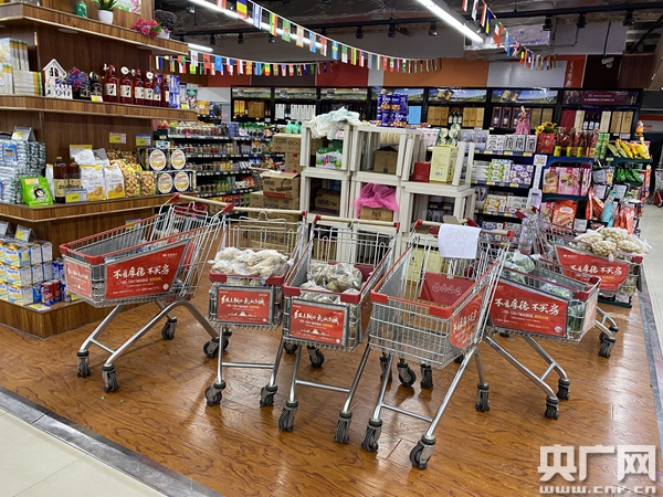 記者在超市內(nèi)看到,包括蔬菜、水果、雞蛋、飲用水在內(nèi)的生活物資品種齊全。超市工作人員楊宏斌告訴記者,超市的貨品由相應(yīng)的基地直供,目前貨源充足,價(jià)格穩(wěn)定。