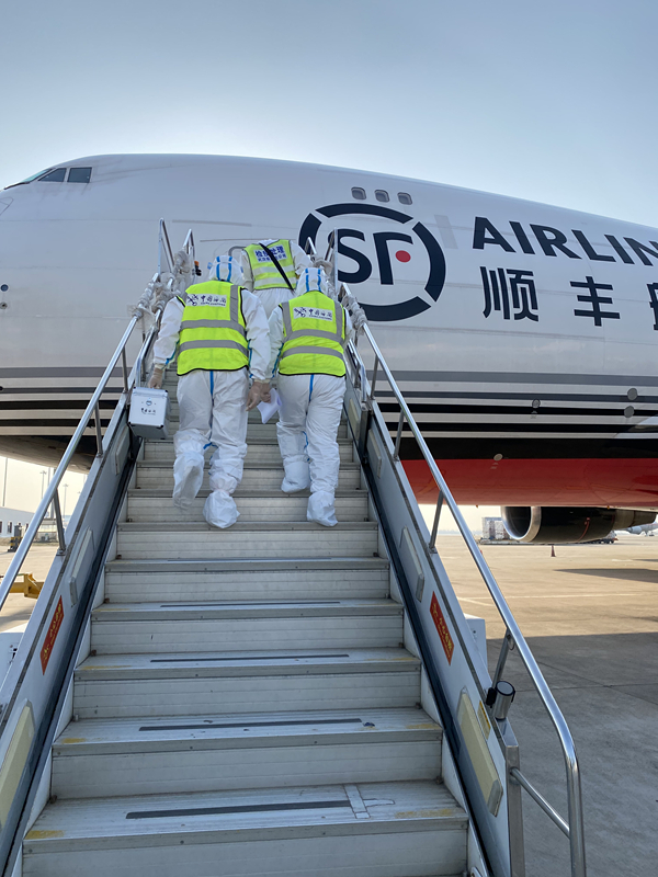 不少國外航空公司都將客運(yùn)航班調(diào)整為了貨運(yùn)航班,在“人物同檢”的要求下,海關(guān)的工作也變得更加精細(xì)。梅思寒說,海關(guān)口岸就是國門最前線,通關(guān)的每一個人、每一件貨物,都要經(jīng)過最嚴(yán)格的檢疫程序!耙矔䦟ω浥摾锩娴呢浳镞M(jìn)行消殺處理,首先會對貨物表面進(jìn)行消殺,貨物卸下來之后,也會對貨艙進(jìn)行消毒處理!