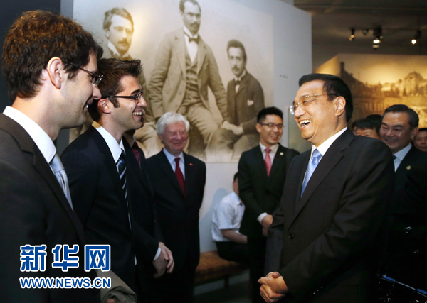 李克強(qiáng):“ 我很希望,不僅是你們,更多的伯爾尼、瑞士的青年在參觀(guān)這兩個(gè)展覽以后他們?cè)敢庾鲋腥鹩颜x的使者!