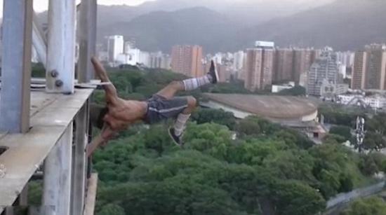 近日,委內(nèi)瑞拉首都加拉加斯上演了驚險(xiǎn)刺激的一幕。26歲的極限運(yùn)動(dòng)員加布里埃爾阿拉伊在60層樓高的建筑上,懸空進(jìn)行單手引體向上等高難度動(dòng)作,沒有穿戴任何安全防護(hù)設(shè)備。高空運(yùn)動(dòng)的視頻被上傳到網(wǎng)上,著實(shí)讓觀眾為他捏一把汗。