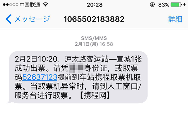 春節(jié)前,為防止春運(yùn)期間回家不好買票,不確定哪天才能返鄉(xiāng)的潘女士,早早地通過攜程網(wǎng),購買了3張從上海到安徽宣城的汽車票。潘女士說,2月2日當(dāng)天換票,輸入攜程提供的短信驗(yàn)證碼后,發(fā)現(xiàn)只有一張票可以出。