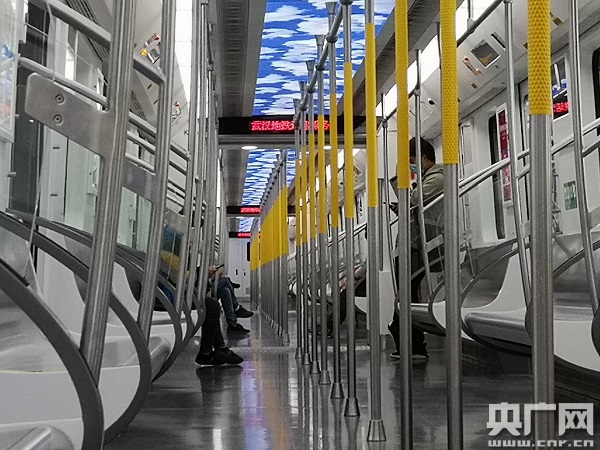地鐵車(chē)廂里,人并不算太多。一排六個(gè)座位,乘客被建議保持距離,每排坐三人(中央廣播電視總臺(tái)央廣記者 肖源 攝)