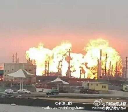 山東日照化工廠球罐爆炸引大火 數(shù)噸重罐體被炸飛200米