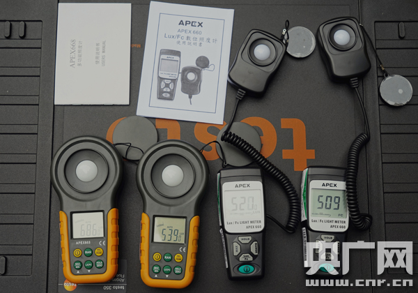 兩款APEX照度計在同一穩(wěn)定光源下,顯示的數值不同。且無廠家信息。
