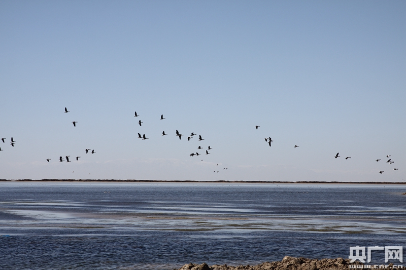 察爾汗鹽湖水鳥齊飛