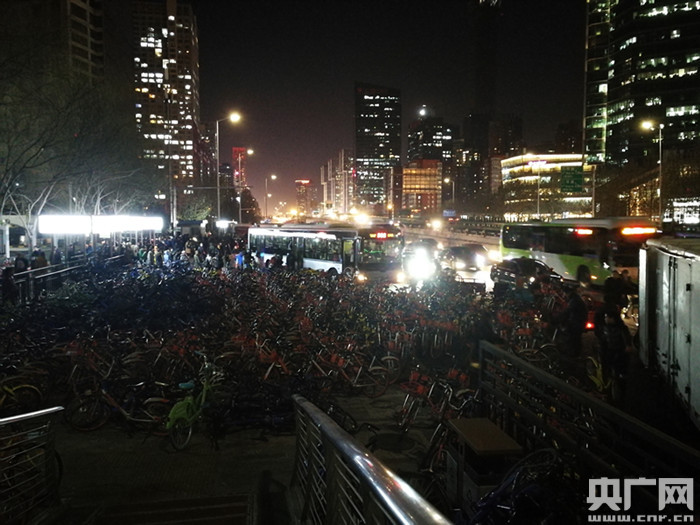 八王墳東站的晚高峰,兩千多輛共享單車聚集