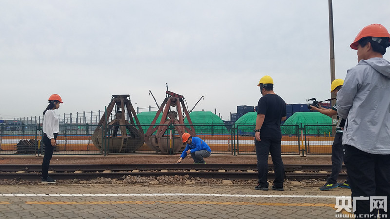 央廣記者侯艷和央視攝像張鵬在中車四方公司拍攝