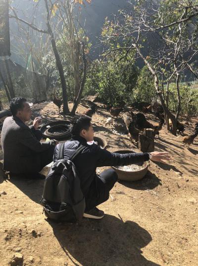 一籌莫展的時候,駐村扶貧工作隊(duì)隊(duì)長桑娜妞找上門來,想聽聽他的計劃。楊文忠說:“過年后養(yǎng)土雞500只以上,豬三十頭,還有牛。但是現(xiàn)在蓋不起,沒有錢!