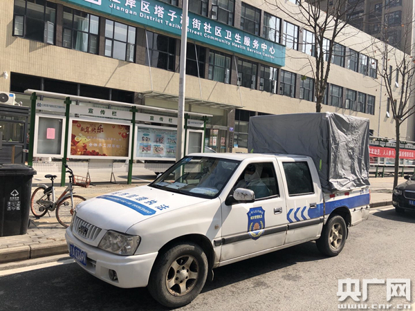 城管執(zhí)法車輛變成了接送醫(yī)護人員上下班的臨時班車(央廣網(wǎng)發(fā) 江岸區(qū)城管局供圖)