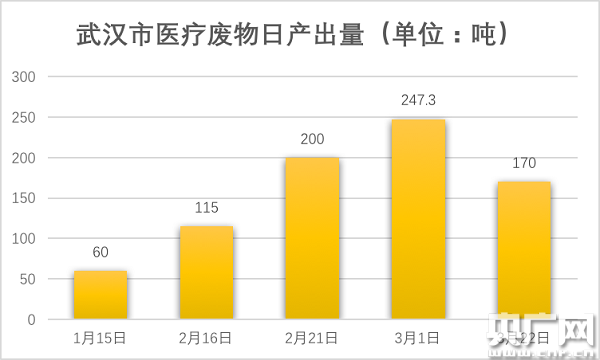 2月25日,武漢市的醫(yī)療廢物產(chǎn)出高達(dá)225噸,此時(shí),全市還有192噸的庫存未清。